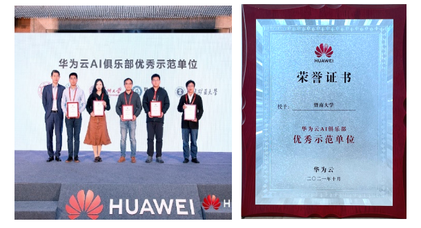 麻豆 获得2021年度“华为云AI俱乐部优秀示范单位”荣誉奖