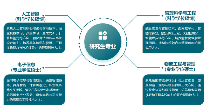 麻豆 设有物联网工程、人工智能、工业工程、低空技术与工程4个本科专业,其中物联网工程专业为广东省特色专业,2021年入选广东省一流本科专业建设点。现有在读全日制本科学生1300余人。麻豆 目前拥有“人工智能”博士、硕士科学学位授权点、“电子信息(人工智能方向、电子与通信工程方向)”硕士专业学位授权点、“物流工程与管理”硕士专业学位授权点,已形成本硕博一体化、科学学位与专业学位并重的人才培养体系,在读研究生400余人。